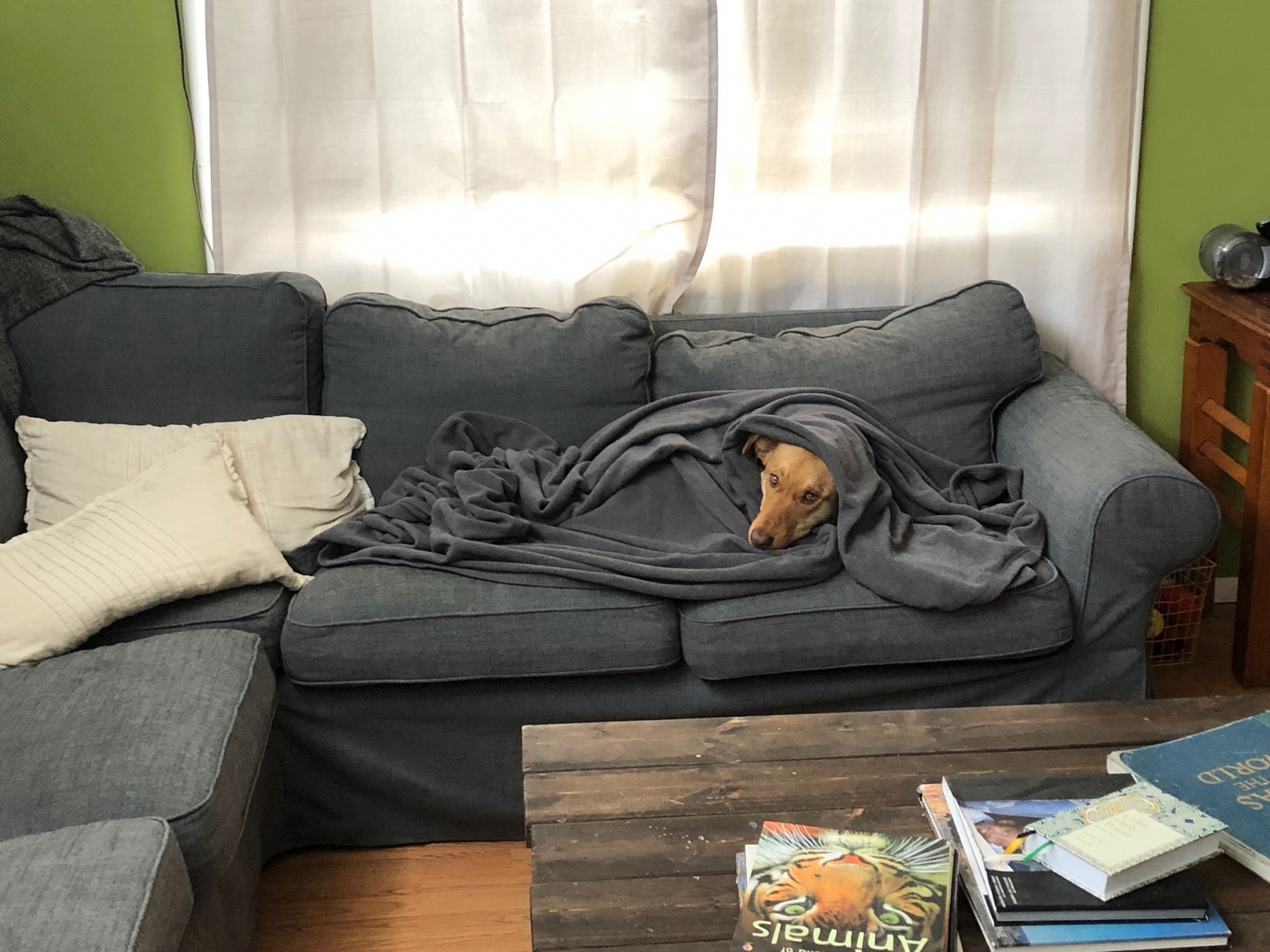 Sassie is a lover. She doesn’t like it when any one of the six members of our family is away from home, and pines for us, keeping faithful vigil from the couch by our upstairs living room window. She gives wet sloppy kisses when we return, whether from all day at work or two minutes in the garage.